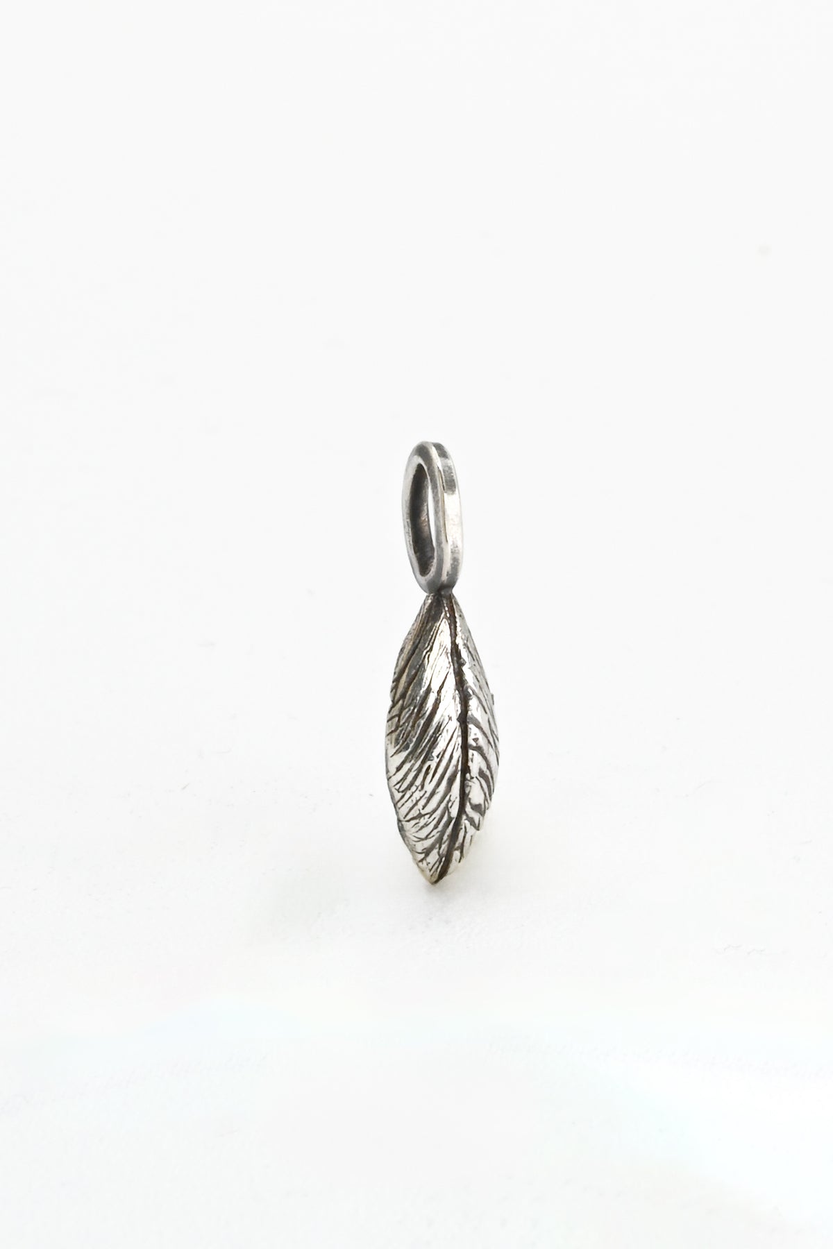 This small silver leaf charm was hand-carved from wax before being cast into solid sterling silver. It connects to your favorite necklace, bracelet, or hoop earring with a dainty sterling silver ring.