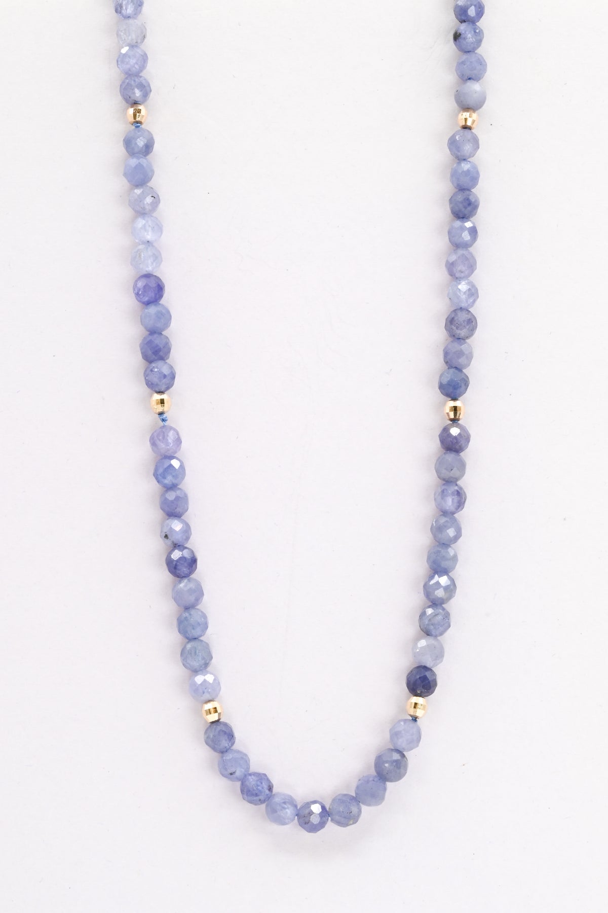 • Materials: Tanzanite, 14k gold beads, 14k gold clasp, silk thread