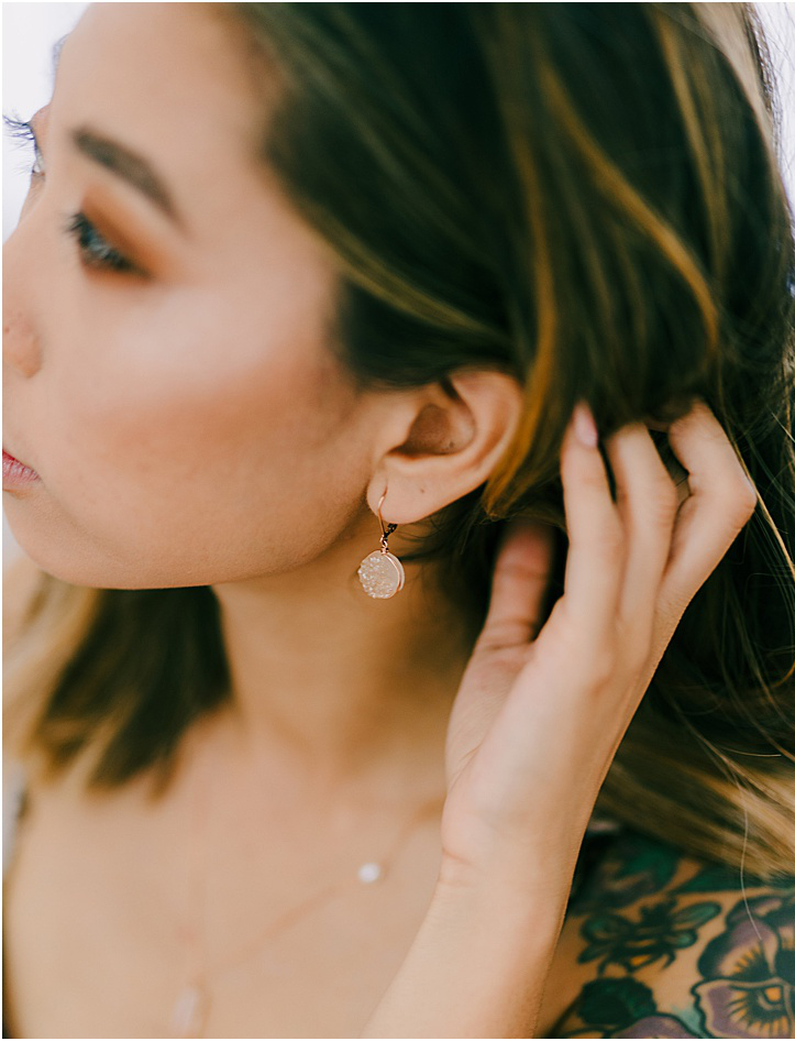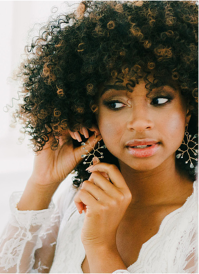 From the pre-designed line of jewelry, most of our work is made from solid 14k gold, sterling silver, bronze, gold- and rose gold-filled metals. Wedding fashion styles and hair accessories are made with plated metals but they are all completely hypoallergenic, with details like sterling silver earring posts to ensure your comfort while wearing our jewelry. All metal types are noted in the individual product descriptions and we can customize most pieces to accommodate your special needs and requests.